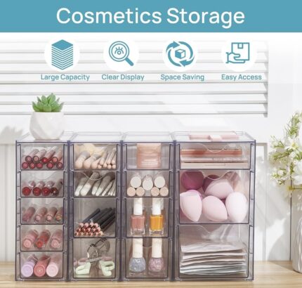 Vtopmart Acrylic Organizer with 16 Drawers (4 Set), Clear Storage Drawers for Office Supplies, Desk Organization and Storage for Makeup, Jewelry, Art Crafts