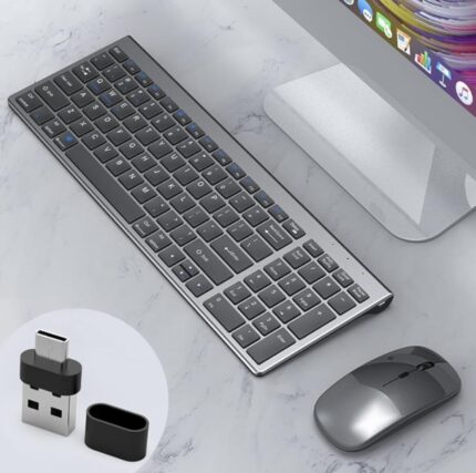 Necomi Rechargeable Keyboard and Mouse Wireless, USB A & Type C Receiver 2.4G Mouse and keyboard, Type C charging(English+Arabic)