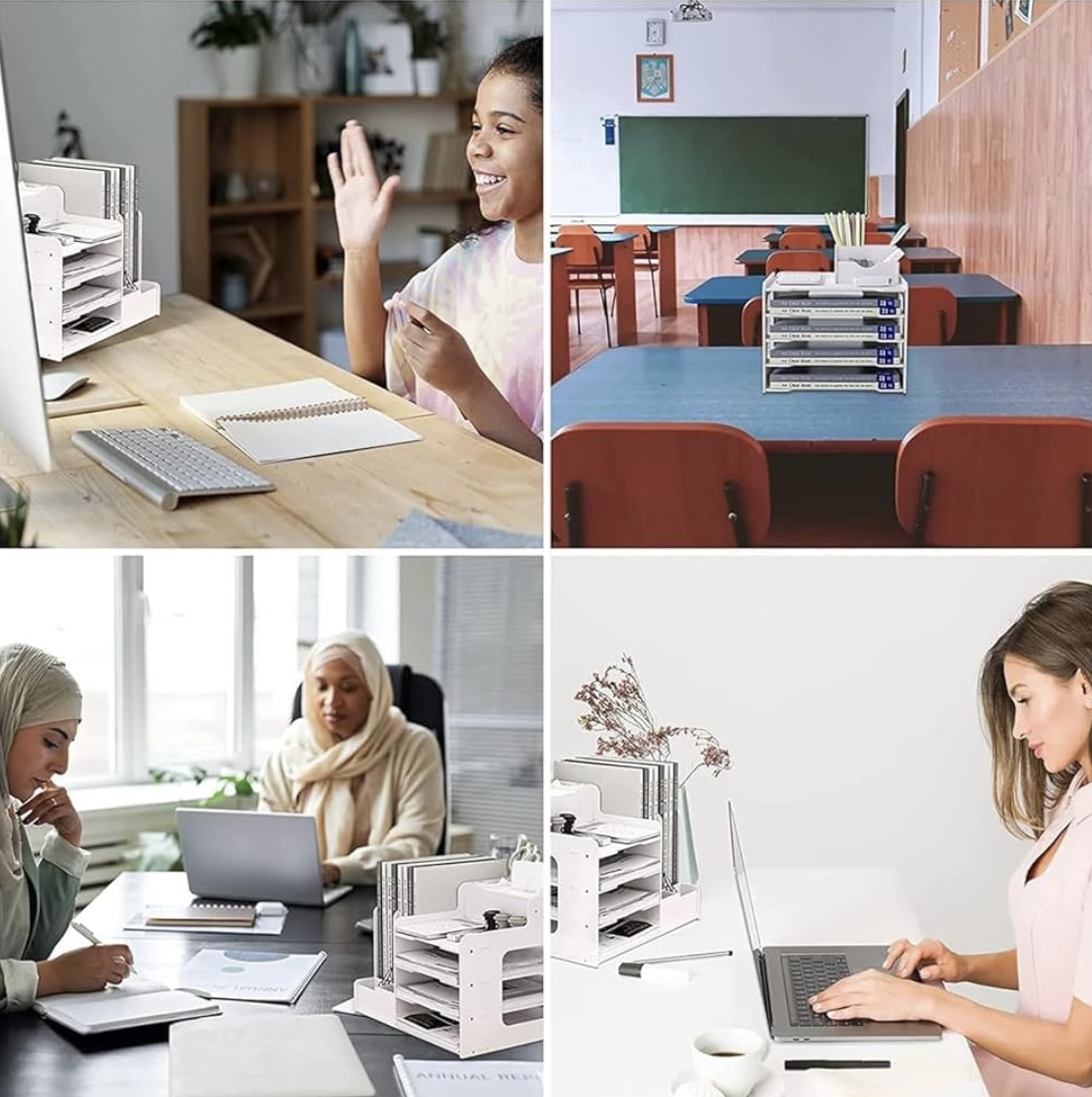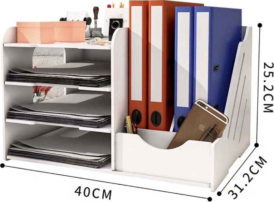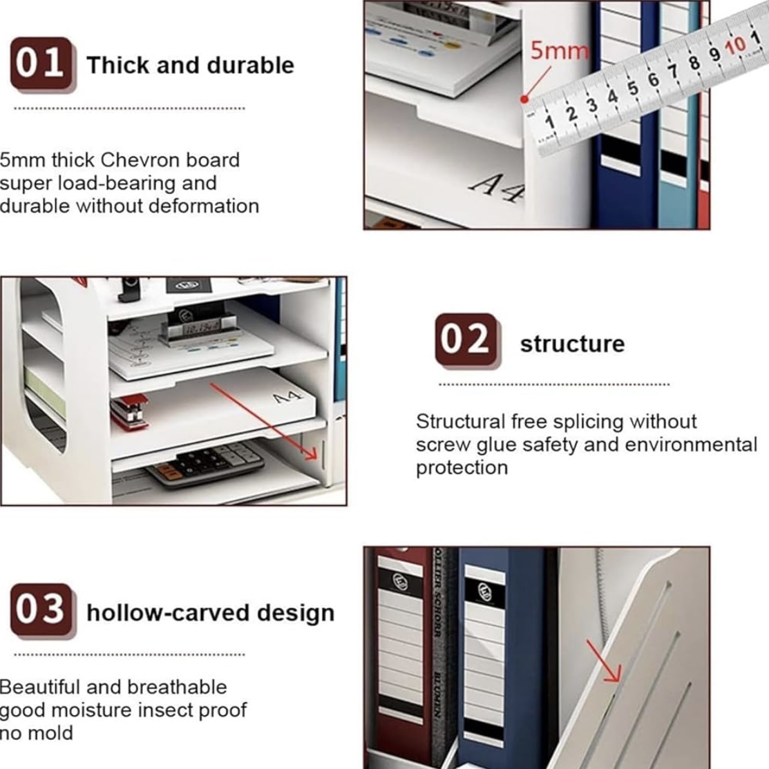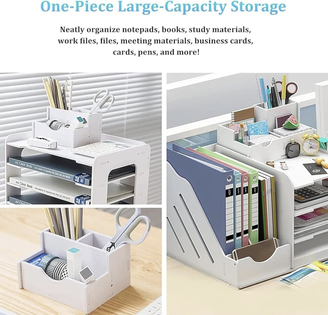 Category: Office & Productivity Tags: 4-Tier Office White Desktop Organizer A4 Paper File, All in One Supplies Storage Box Mail Sorter on Desk Tabletop Binder Folder Letter Trays Study Home, for Home Office Supplies, Office Desk Accessories