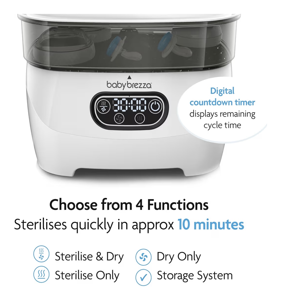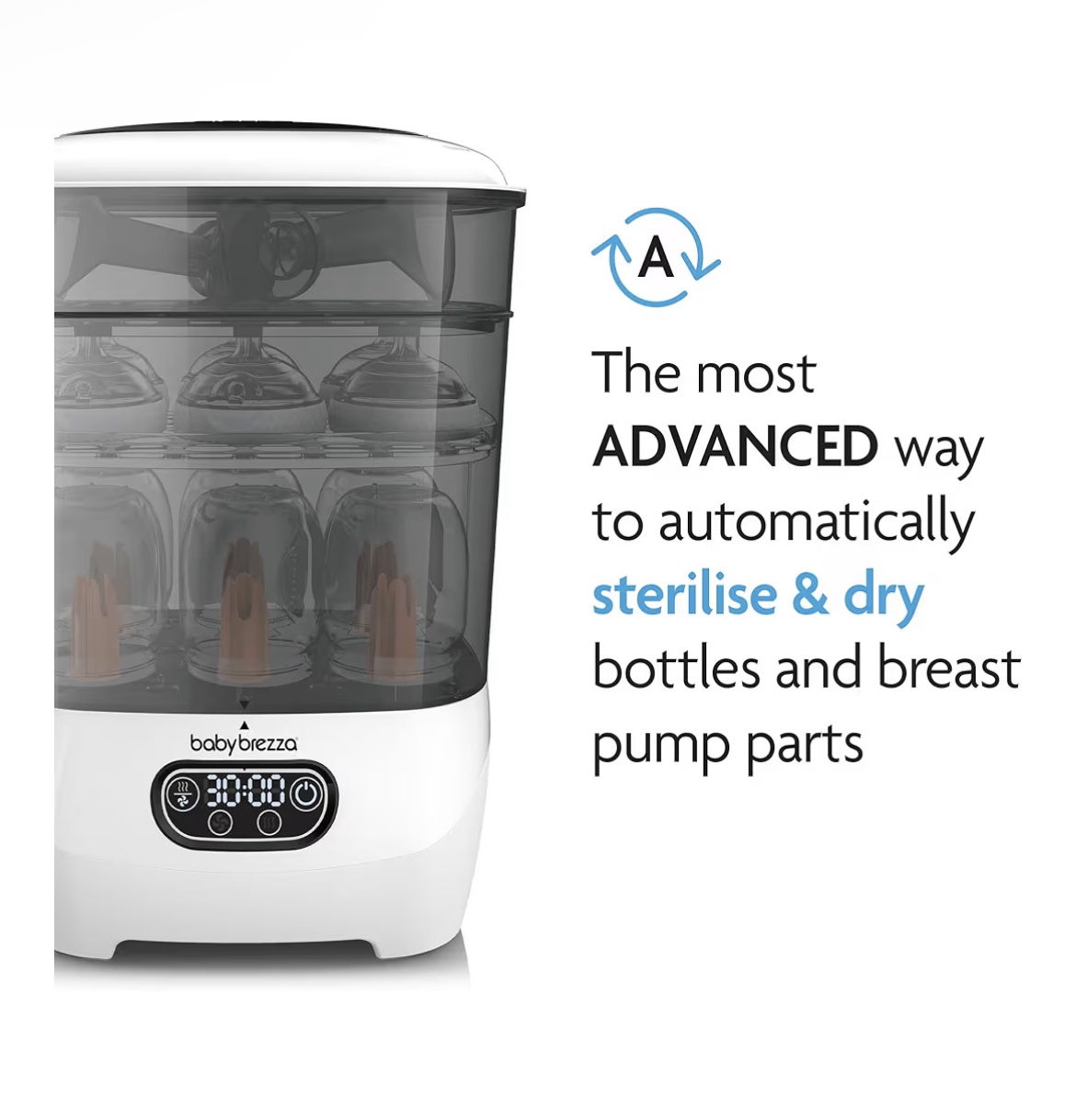 Baby Brezza Bottle Sterilizer and Dryer Advanced – Electric Steam Sterilization Machine Universal Sterilizing for All Bottles: Plastic + Glass Pacifiers Breast Pump Parts – HEPA Filtration-White