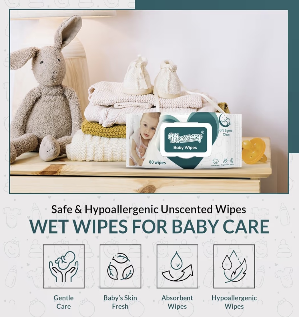 Baby Wipes – Unscented, Alcohol-Free, Wipes for Baby Care – Soft & Gentle Wet Wipes for Cleaning Delicate Skin, Diaper Changes, Everyday Baby Cleaning Wipes (Pack of 15)