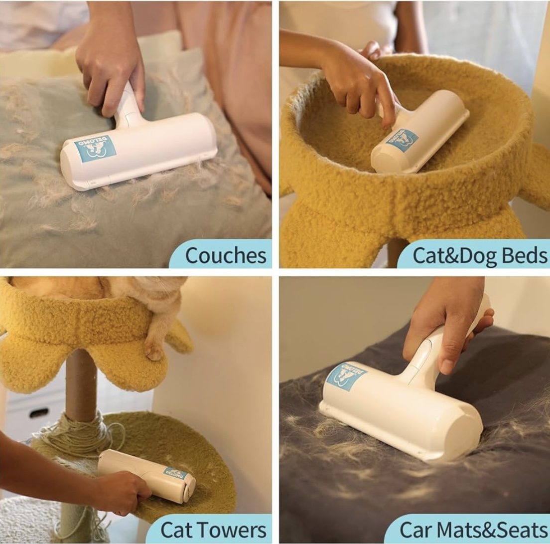 DELOMO Pet Hair Remover – Lint Roller for Pet Hair – Cat and Dog Hair Remover for Couch, Furniture, Carpet, Car Seat, Reusable Roller W/Self-Cleaning Base – Upgraded Animal Fur Removal Tool