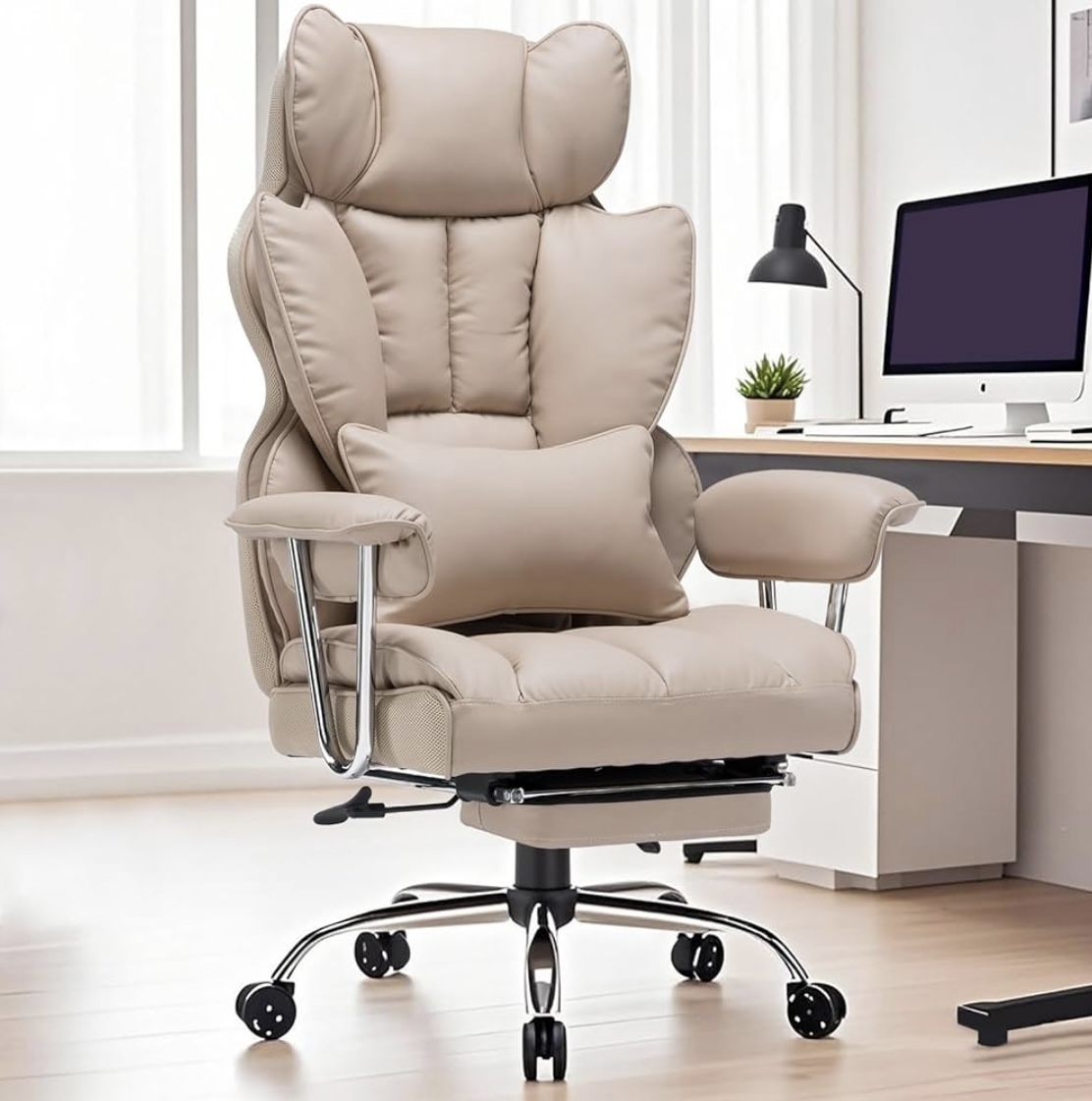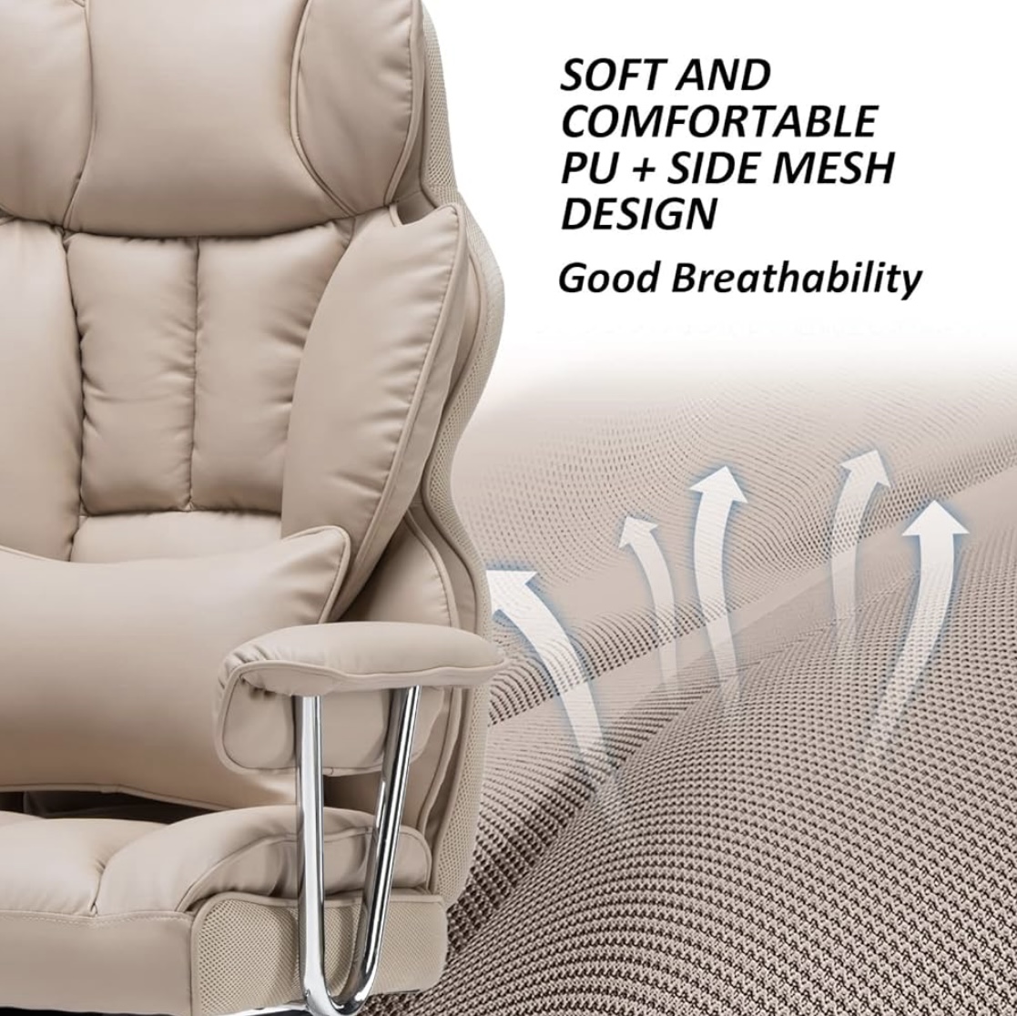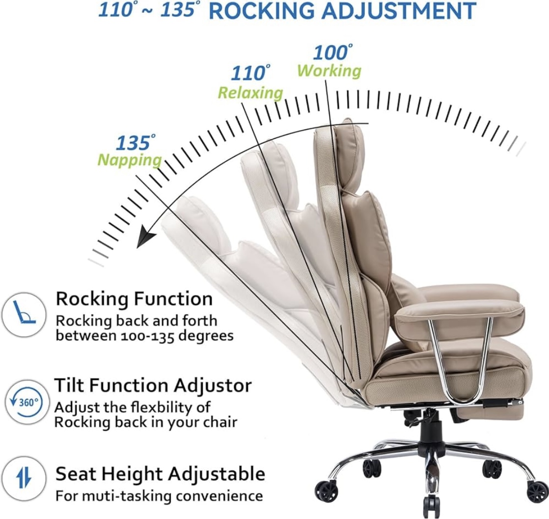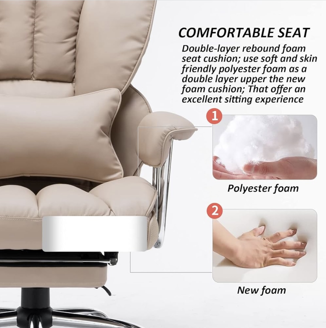 Category: Office & Productivity Tags: Dark Beige, Efomao Big and Tall Office Chair 400lbs - PU Leather Executive Desk Chair with Lumbar Support & Leg Rest, Heavy-Duty Computer Chairs for Home Office