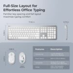 Home Office & Productivity iClever GK08 Wireless Keyboard and Mouse Combo – Full-Size Ergonomic Keyboard with Number Pad, 2.4G USB, Quiet Click, 3-Level DPI, Rechargeable, Slim Design for Windows/Mac, Silver