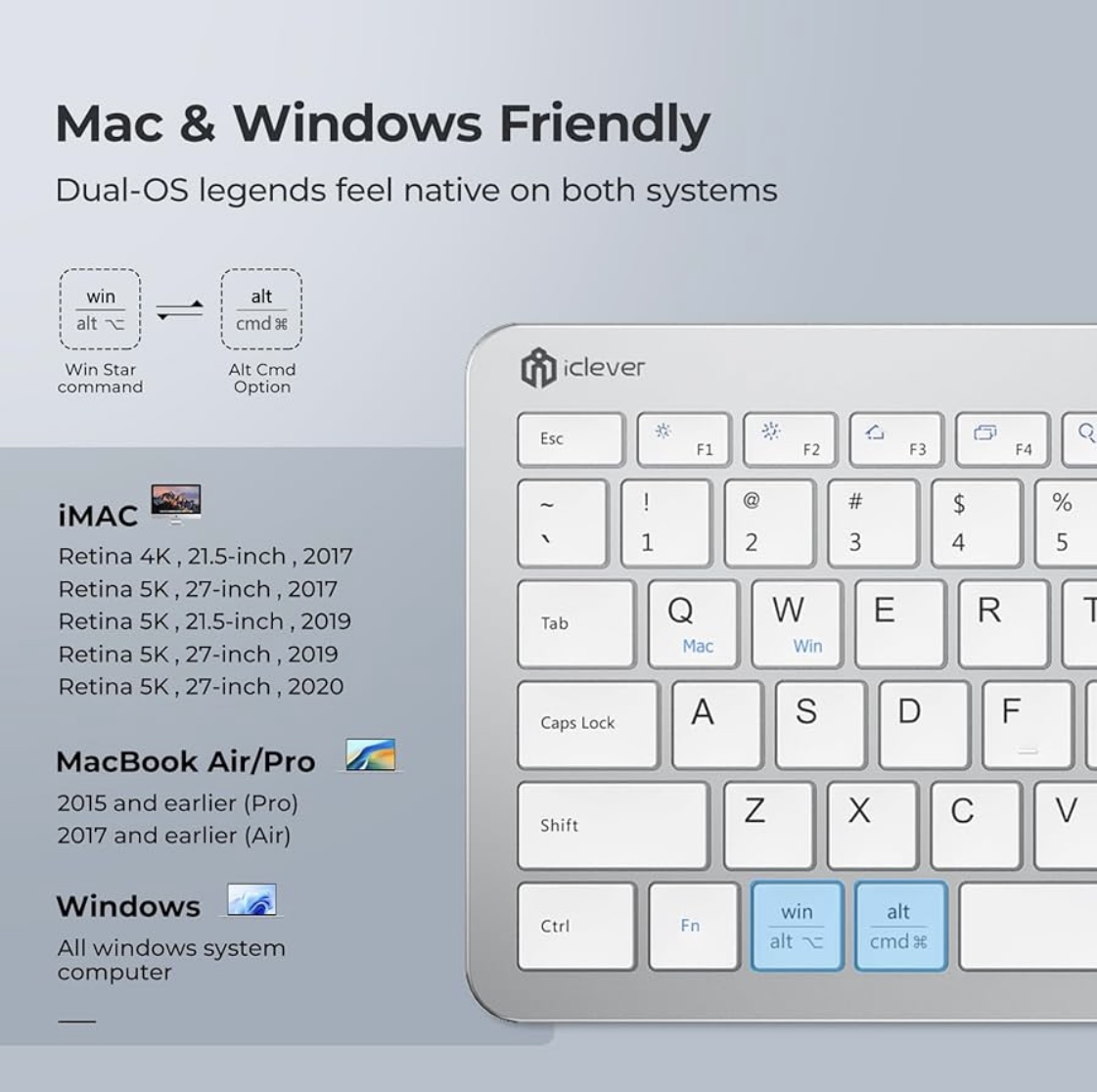 Be the first to review “iClever GK08 Wireless Keyboard and Mouse Combo – Full-Size Ergonomic Keyboard with Number Pad, 2.4G USB, Quiet Click, 3-Level DPI, Rechargeable, Slim Design for Windows/Mac, Silver” Cancel reply