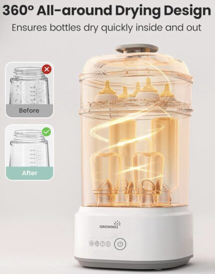 Grownsy Baby Bottle Sterilizer and Dryer, Compact Baby Bottle Sterilizer, Electric Steam Bottle Sanitizer for Baby Bottles, Pacifiers, Pump Parts