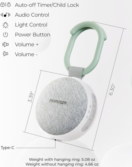 Momcozy Portable Sound Machine with Night Light, White Noise Sound Machine for Baby, 20 Soothing Sounds, Sound Therapy, Long-lasting Power, Timer, Clips on Stroller, Baby Shower Gifts
