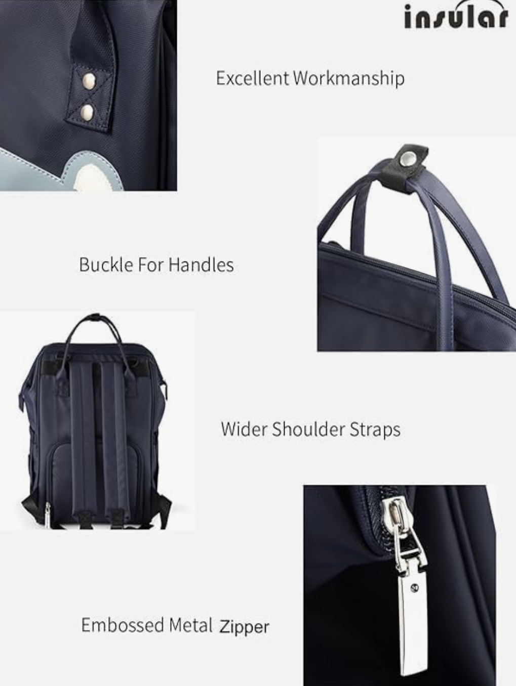 Insular 3-Way Diaper Bag Backpack with Stroller Hook – Waterproof Oxford Fabric, 11 Compartment Organizer, Ergonomic Shoulder Straps – Keeps Baby Safe and Mom Comfortable