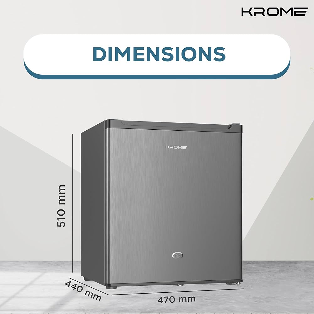 Be the first to review “KROME 60L Gross, Single Door Compact Refrigerator, Energy Class A+, Reversible Door, Mini Fridge Suitable for Kitchen, Bedroom Office & Minibar, INOX Color, 5 Year Compressor Warranty- KR-RDC60H” Cancel reply