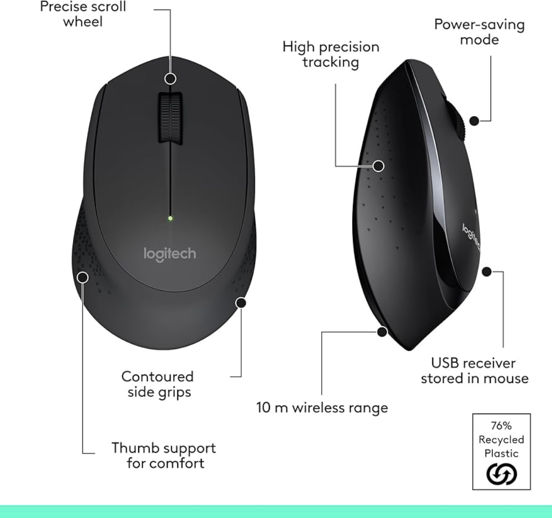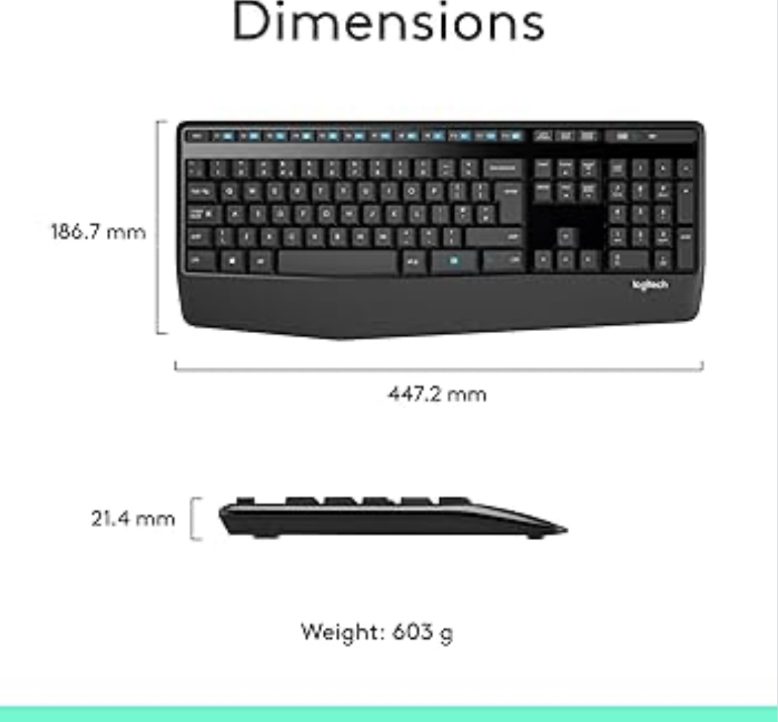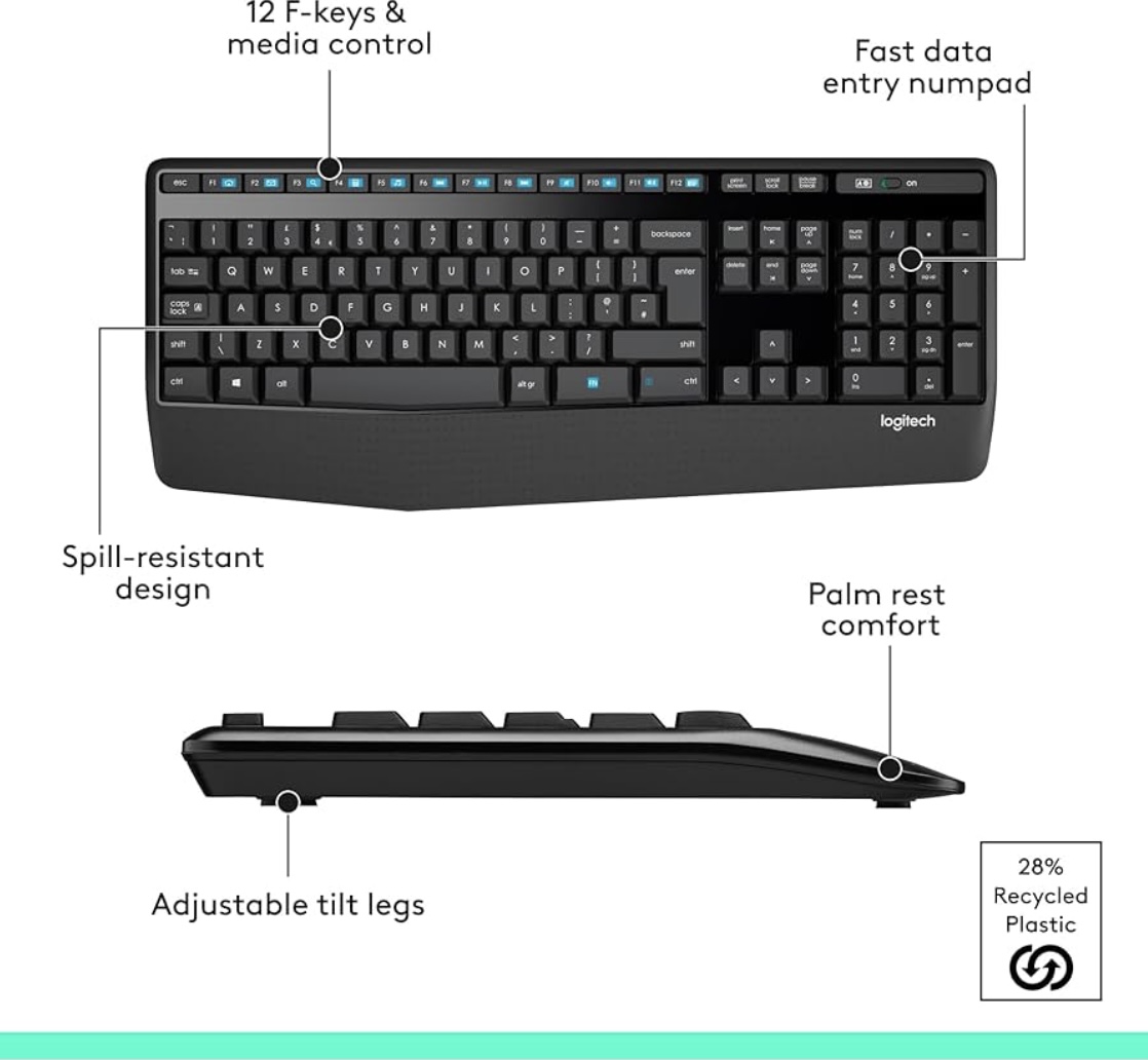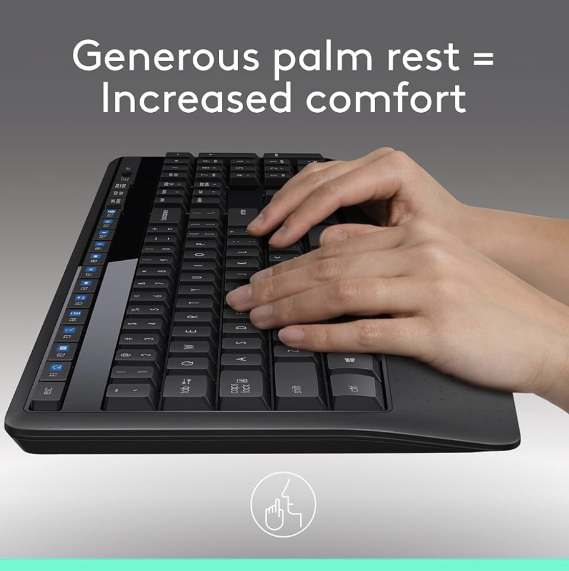 Home Office & Productivity Logitech MK345 Wireless Keyboard and Mouse Combo, Full-Sized Keyboard with Palm Rest, Right-Handed Mouse, 2.4 GHz Wireless USB Receiver, Compatible with PC, laptop, Arabic Layout – Black