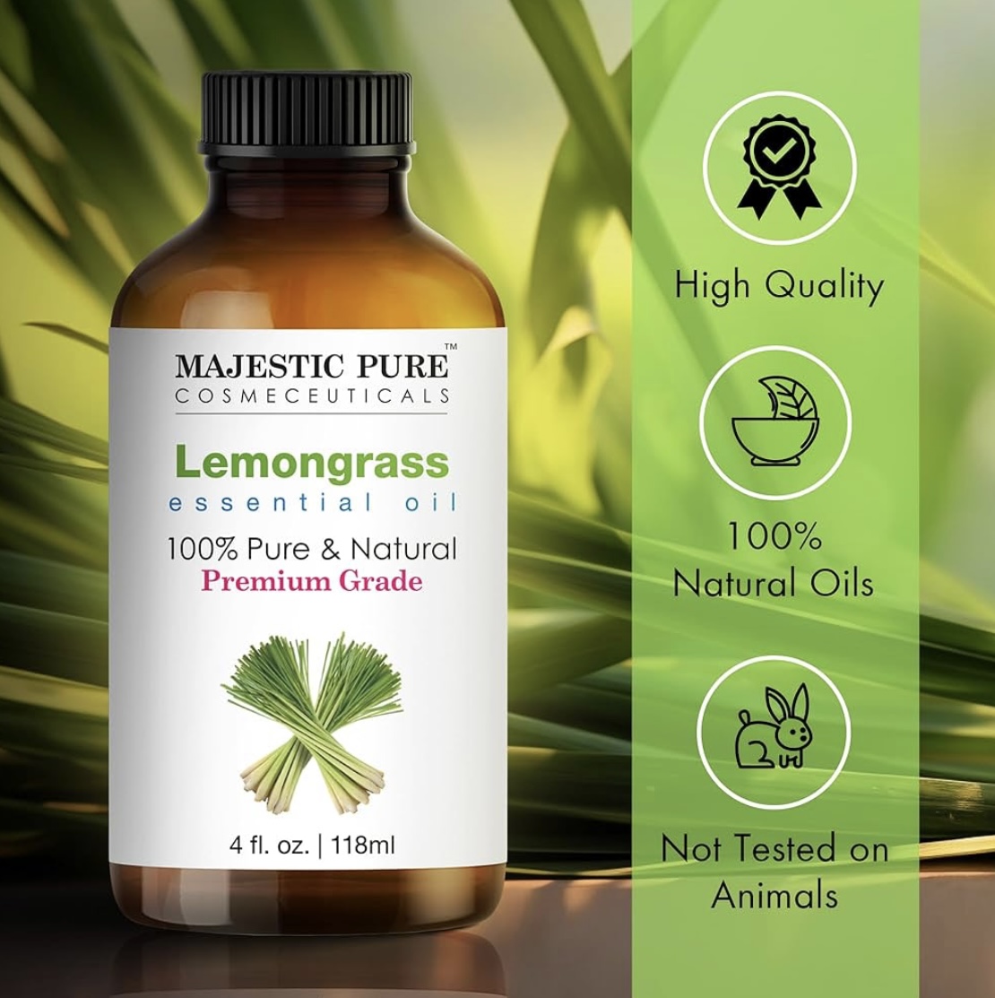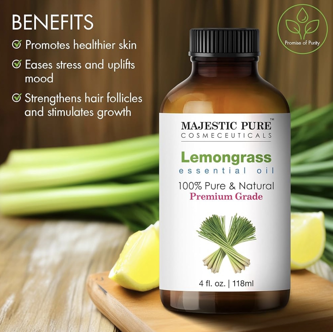 MAJESTIC PURE Lemongrass Essential Oil | 118 ml | 100% Pure and Natural Lemongrass Oil | Premium Grade Essential Oils for Hair Care, Home Diffusers, Skin, Aromatherapy, Massage and Humidifiers
