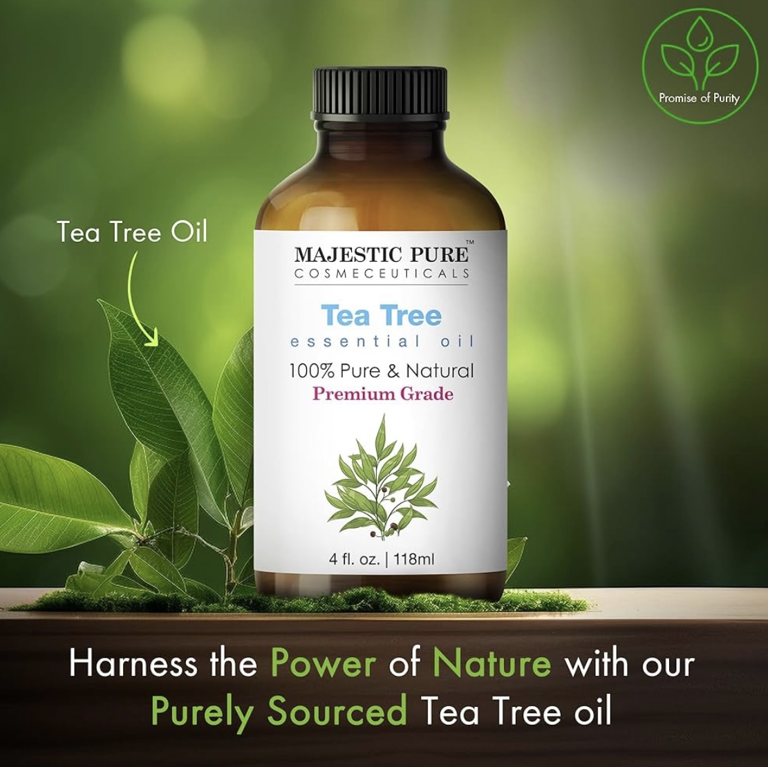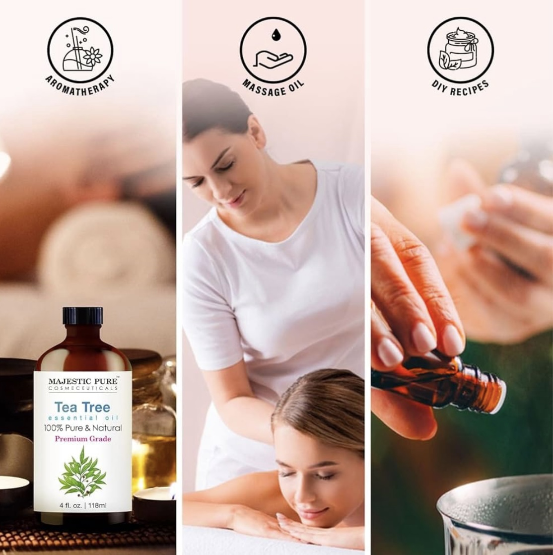 MAJESTIC PURE Tea Tree Essential Oil – Large 118 ml Bottle | 100% Pure & Natural | Premium Grade Essential Oil for Hair Care, Skin, Aromatherapy, Diffusers, Massage & Humidifiers