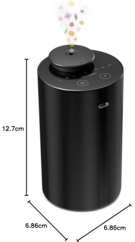 Airversa Waterless Diffuser for Essential Oil, Battery Operated Nebulizer, 0.7 Fl.Oz./ 20mL Capacity, Mini Scent Air Machine, 4 Timers & 3 Mist Levels for Home, Room, Car, Office – AN6 Black