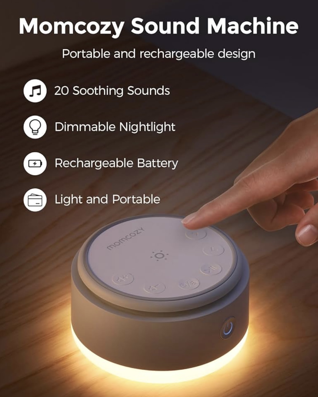 Momcozy Sound Machine for Baby-20 Soothing Sounds & Touch Warm Light Portable White Noise for Kids & Adults for Sleeping Timer and Memory | Ideal Travel Companion & Nursery Must-Have