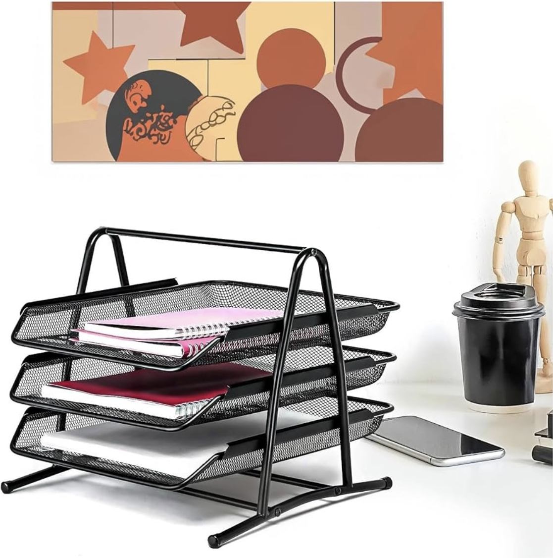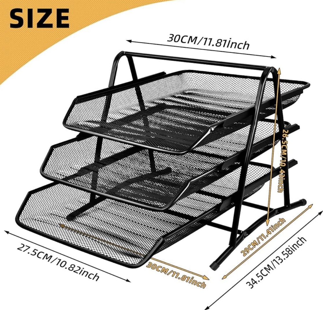 Home Office & Productivity MOMENT 3-Tier Paper Tray, Desktop Organizer, 3 Layer A4 Metal tray Office Desk Organiser, Paper File Storage, Workspace, Office, Black