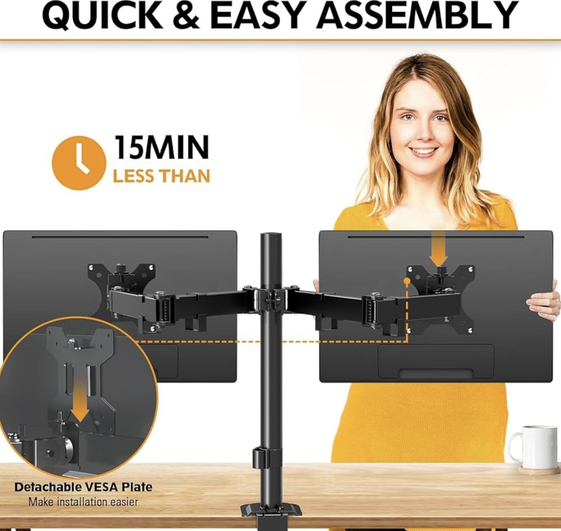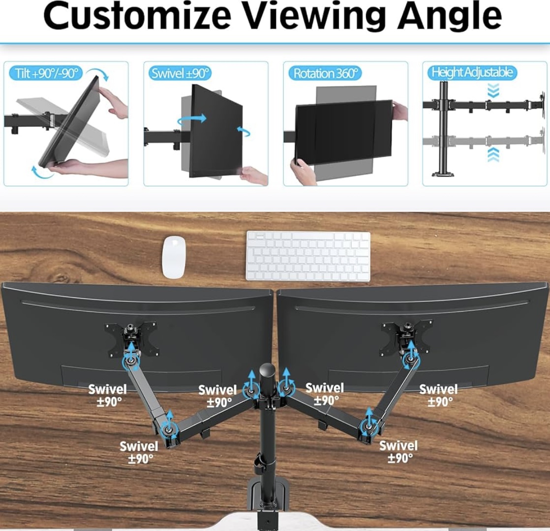 Be the first to review “MOUNTUP Dual Monitor Desk Mount, Max 32 Inch up to 17.6lbs, Fully Adjustable Dual Monitor Arm for 2 LCD Screens, Dual Monitor Stand with C-Clamp and Grommet Base” Cancel reply