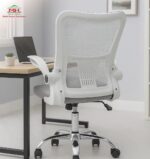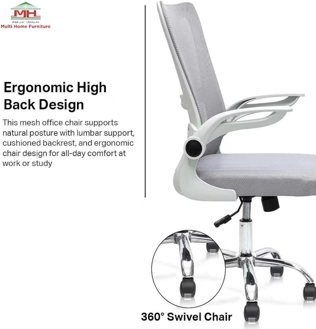 Multi Home Furniture White Mesh Office Chair – Swivel Desk Chair with Lumbar Support, Flip-Up Arm & Chrome Base – Ergonomic Chair Adjustable Computer Chair for Home Office, Study, Gaming & Workstation