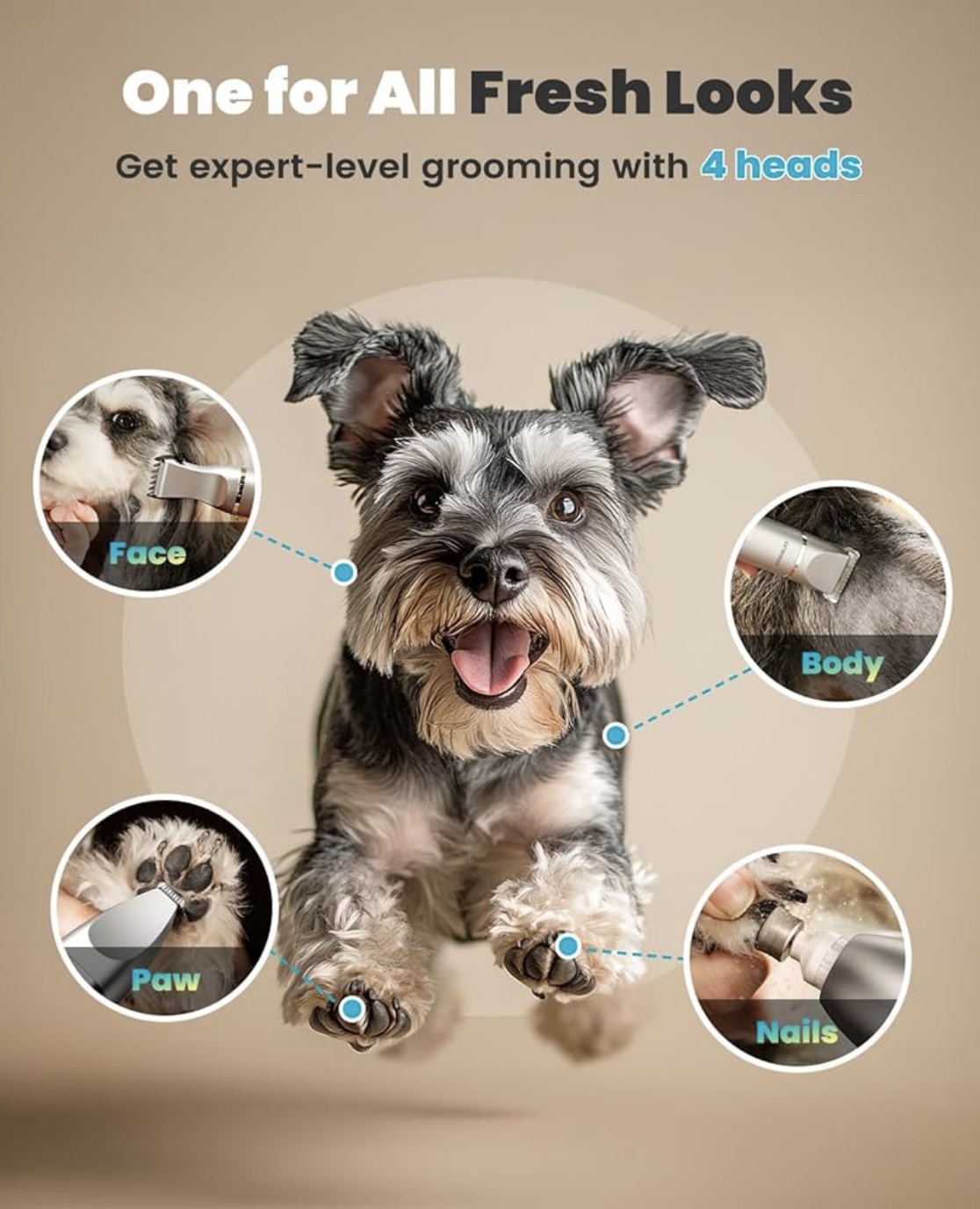 Category: Pet Care Tags: Dog Hair Trimmer for Paw Nail Grinder, oneisall 4 in 1 Dog Grooming Kit with LCD Display, Rechargeable 2000 mAh Pet Clippers