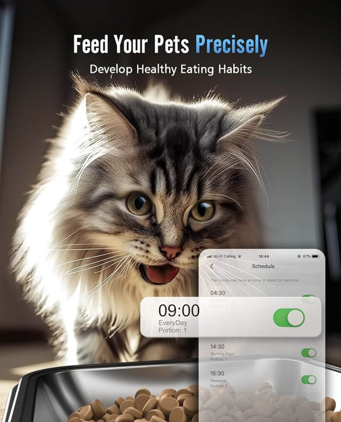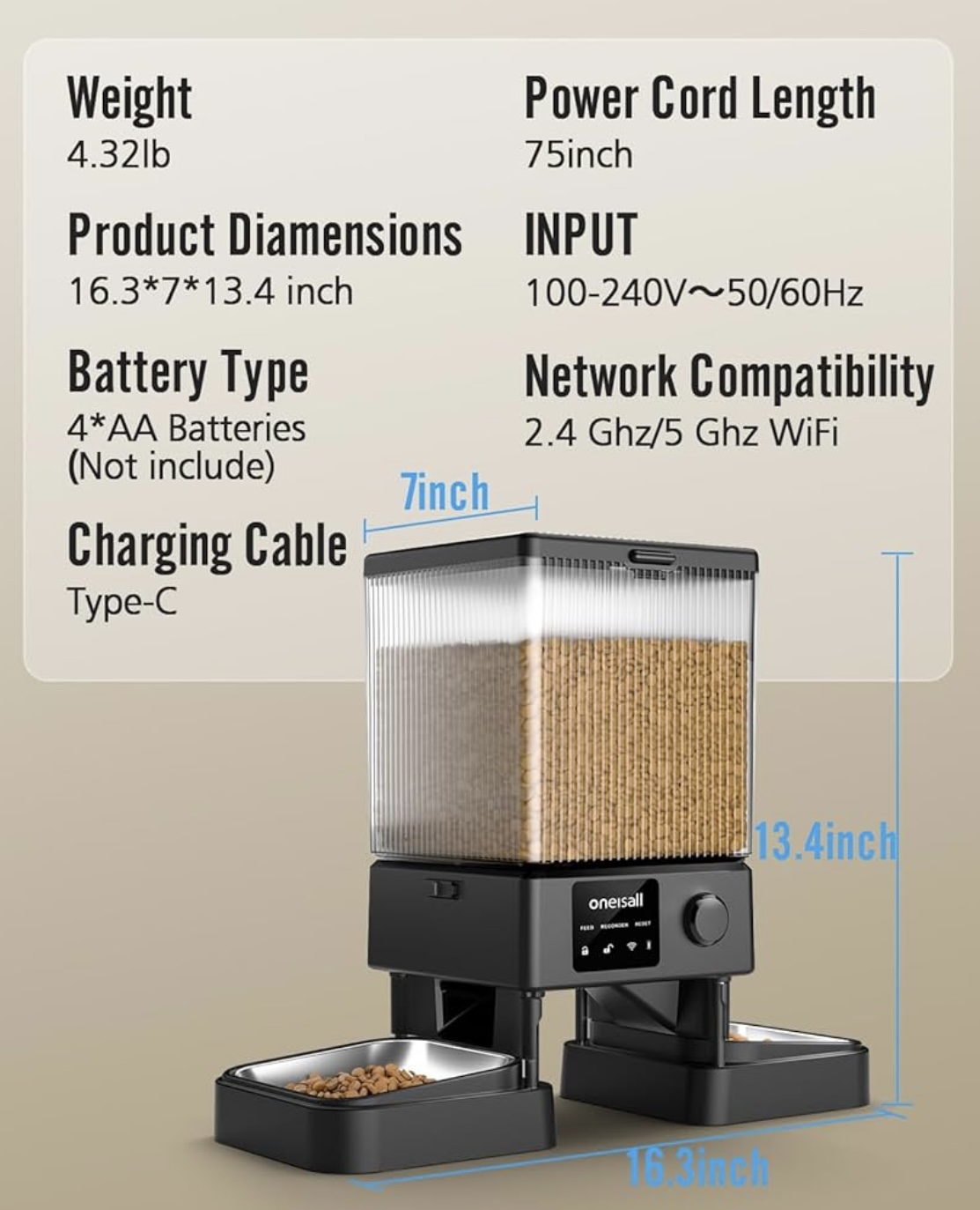 Category: Pet Care Tags: 20 Cups/5L Timed Dry Food Dispenser with APP Control, Automatic Cat Food Dispenser for 2 Cats Small Pets, oneisall Automatic Cat Feeder with 5G WiFi