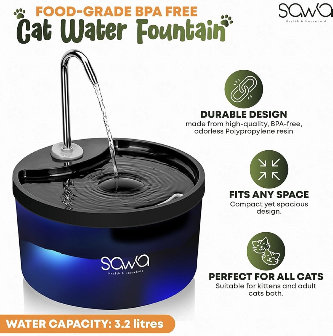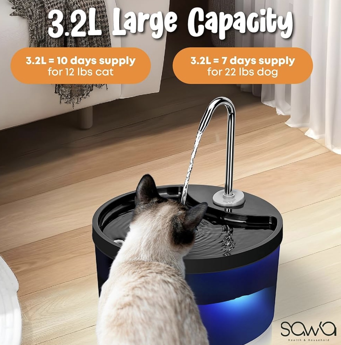 Be the first to review “SAWA Cat Water Fountain, 3.2L/108oz Cats Fountains for Drinking, Pet Water Fountain for Cats Indoor, Automatic cat water Dispenser with 2 Flow Modes, kitty Spout Fountains for Cats Dogs” Cancel reply