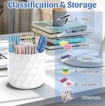 Desk Organizer, Sparkling Diamond-like Pen Holder for Desk 360°Rotating Office Desk Accessories, Pencil Cup with 5 Compartments Storage Box Caddy for Office, School, Home, Art Supply(White)