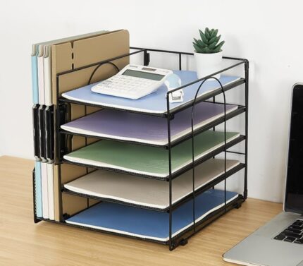 Desk Organizers and Accessories, 5-Tier Paper Letter Tray Organizer with File Holder, Desktop Organizer for Office Supplies, Office Desk Accessories & Workspace(Black)