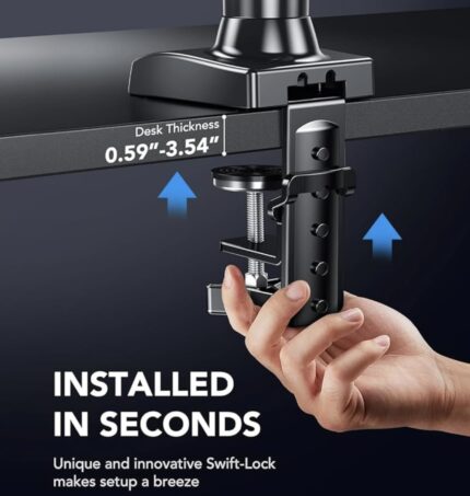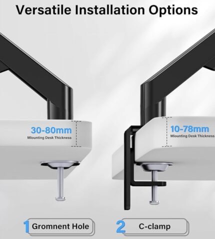 HEYMIX LIFE Single Monitor Arm – Ergonomic Monitor Stand VESA Mount, Computer Monitor Arm Gas Spring, Vesa Arm Adjustable Monitor arm, Monitor Mount & 2 Grommet Mounting Base for 32″ 2-9 kgs Sceens