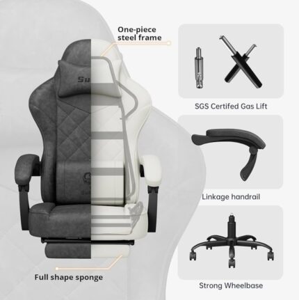 Gaming Chairs, Ergonomic Gaming Chair with Footrest for Adults, Technology Fabric Computer Chair with Headrest and Lumbar Support, Reclining Chair PC Office Chair, High Back, 350 LBS, Black