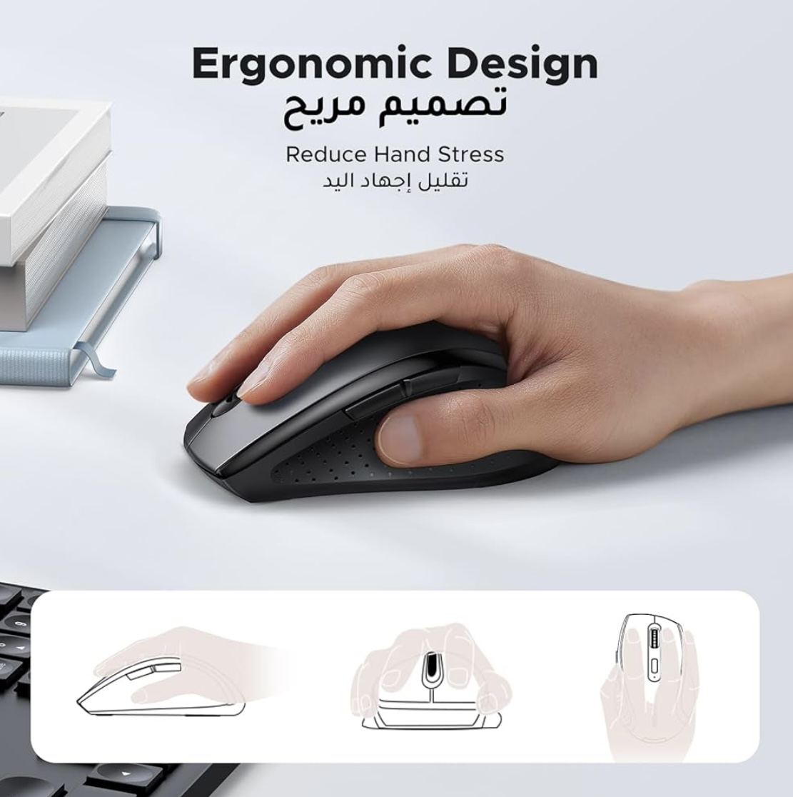 Home Office & Productivity UGREEN Wireless Mouse, 2.4GHz Stable Connection, Ergonomic Silent Mouse, 5-Button with 3 Adjustable DPI (800/1200/1600), Compatible with Windows, macOS, iOs, Android, Linux