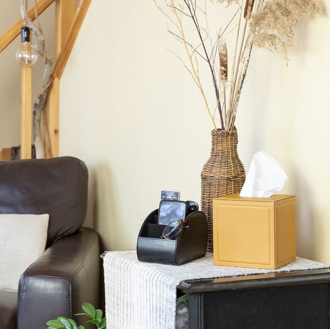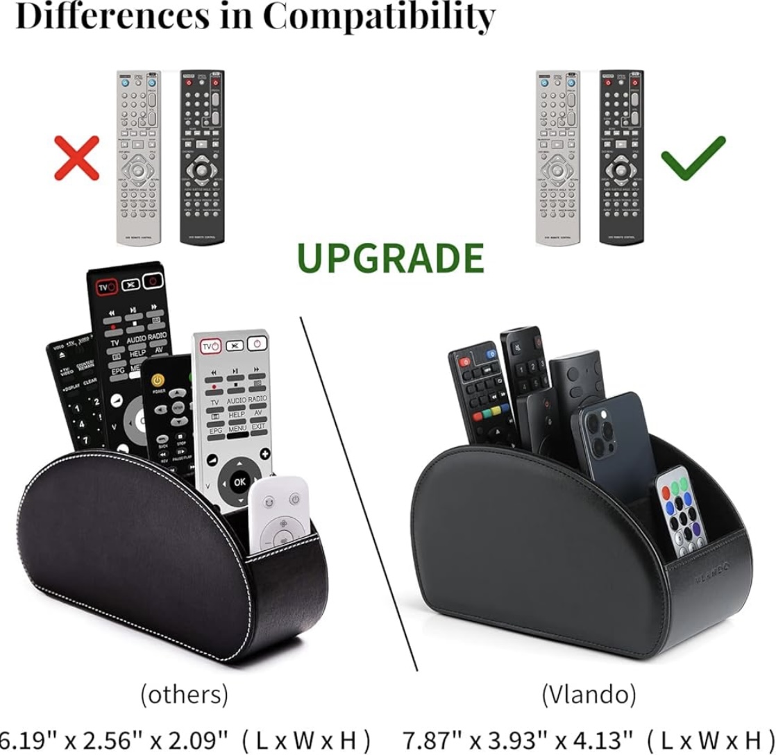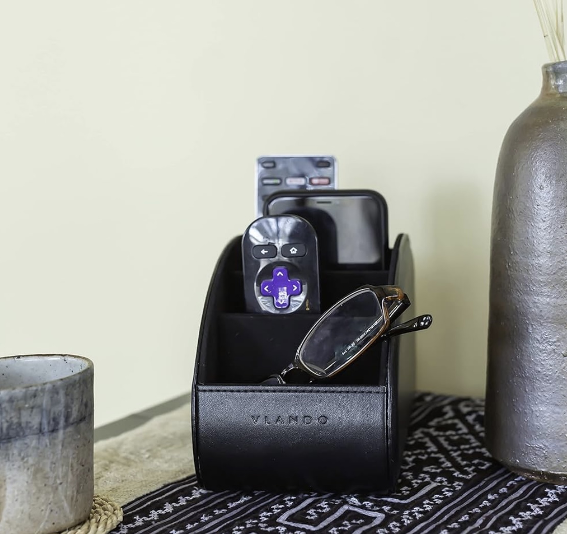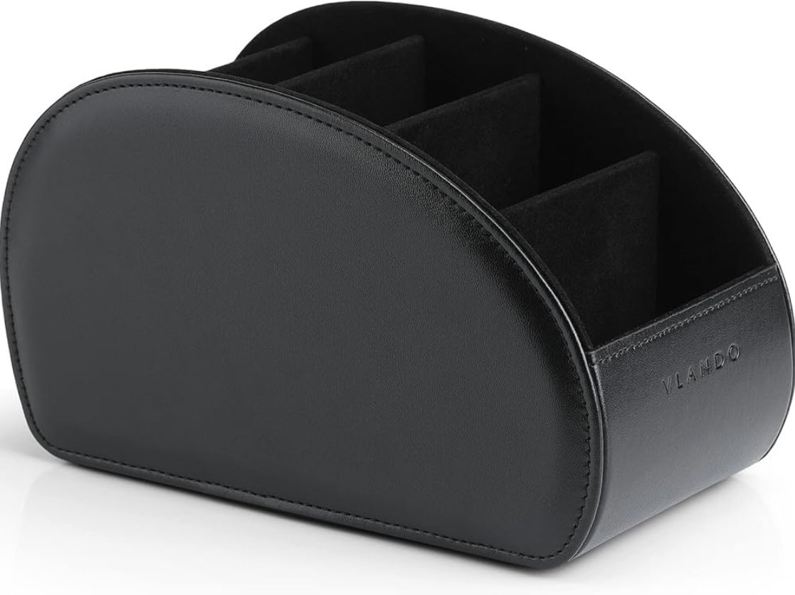 Be the first to review “Vlando Leather Remote Control Holder – Large Remote Control Caddy – Desktop Organizer with 5 Compartments Fits TV, DVD, Blu-Ray, Media Player, Heater Controllers, Office and Makeup Supplies (Black)” Cancel reply