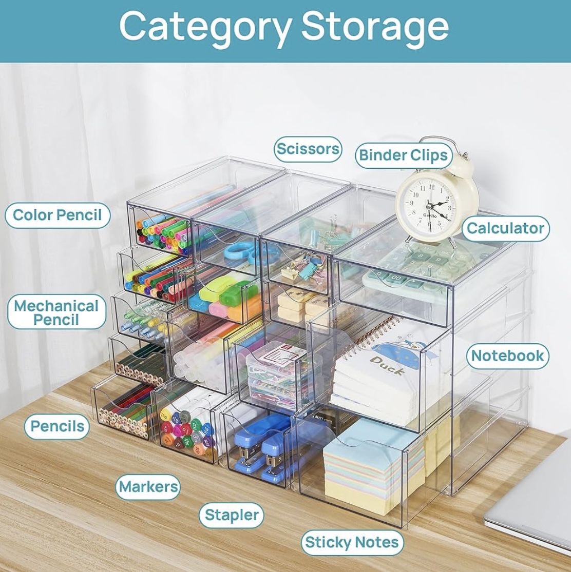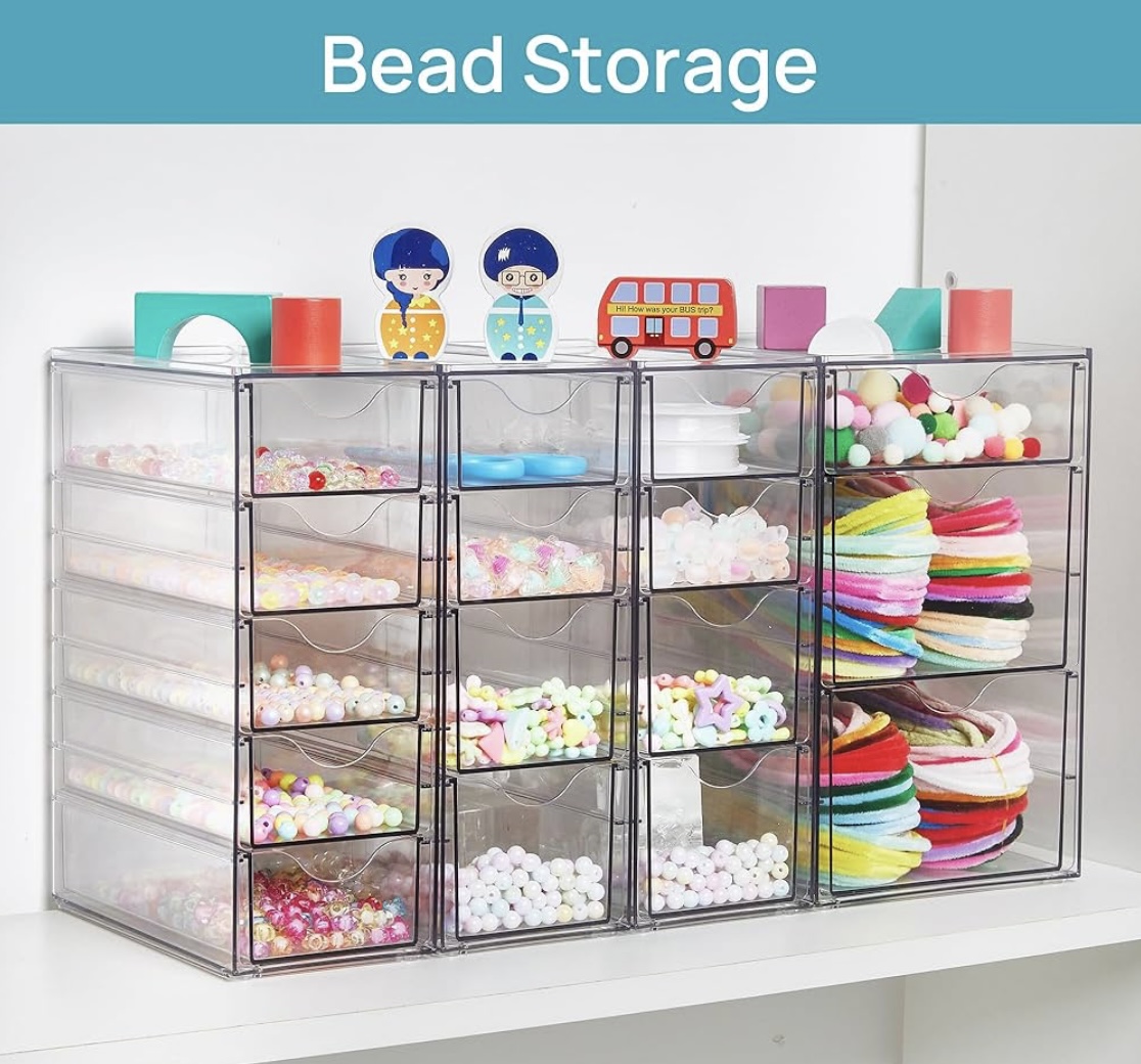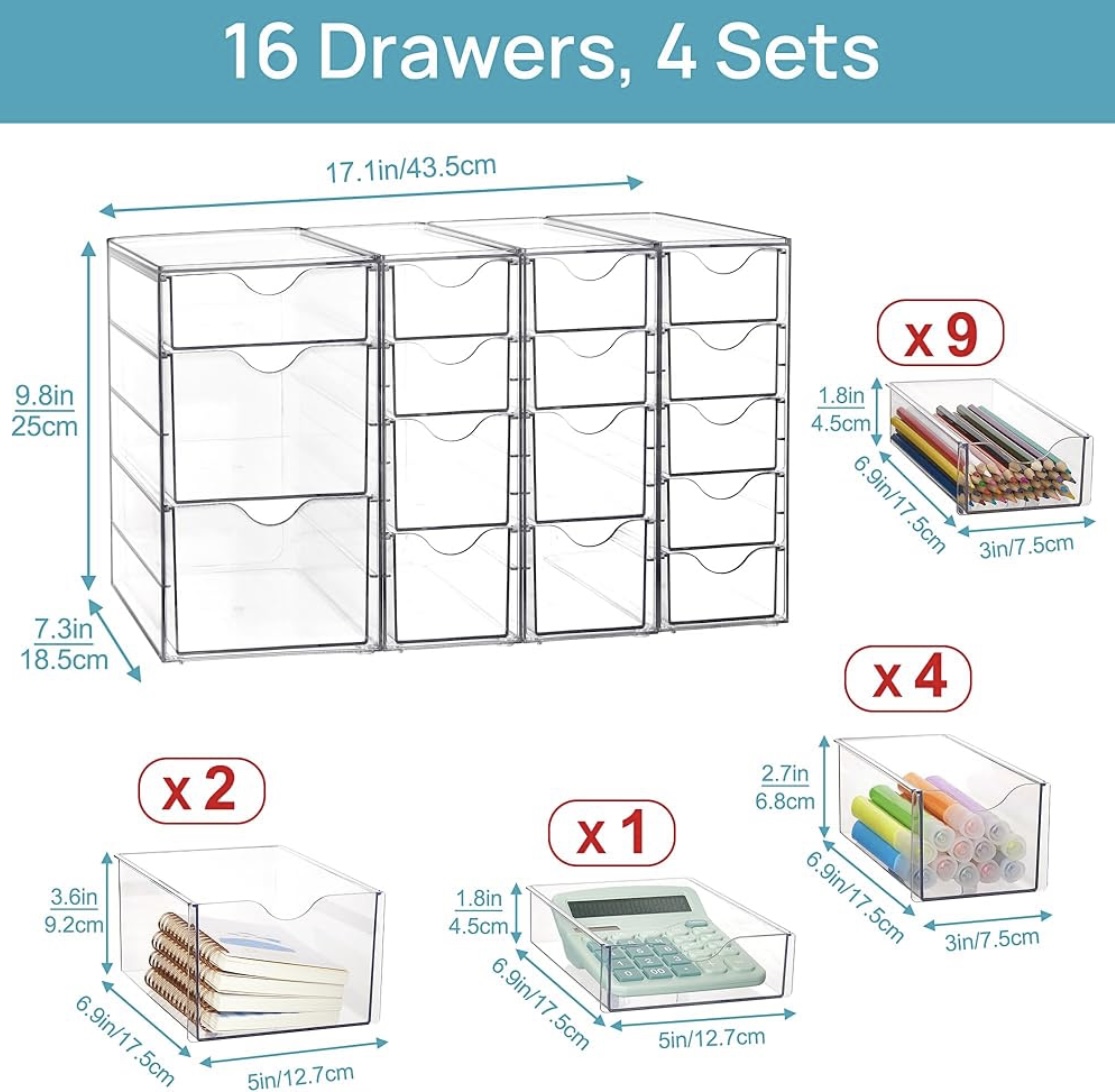 Vtopmart Acrylic Organizer with 16 Drawers (4 Set), Clear Storage Drawers for Office Supplies, Desk Organization and Storage for Makeup, Jewelry, Art Crafts