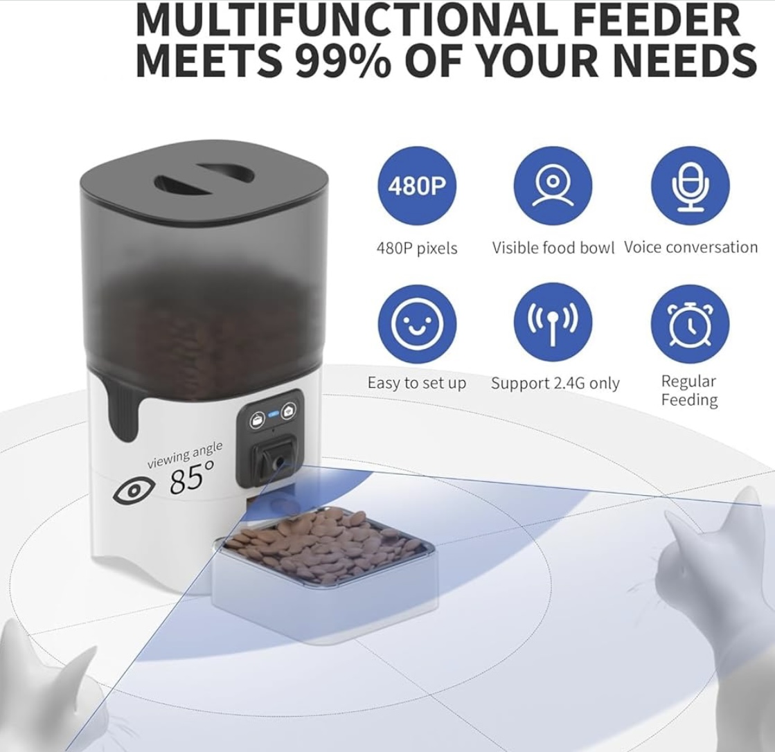 Category: Pet Care Tags: 24H Live Video, 3kg Food Dispenser for Cats & Dogs (Off-White), Two-Way Voice and Timed Portion Feeding, XVersion 6L Smart Pet Feeder with WiFi Camera - App Control
