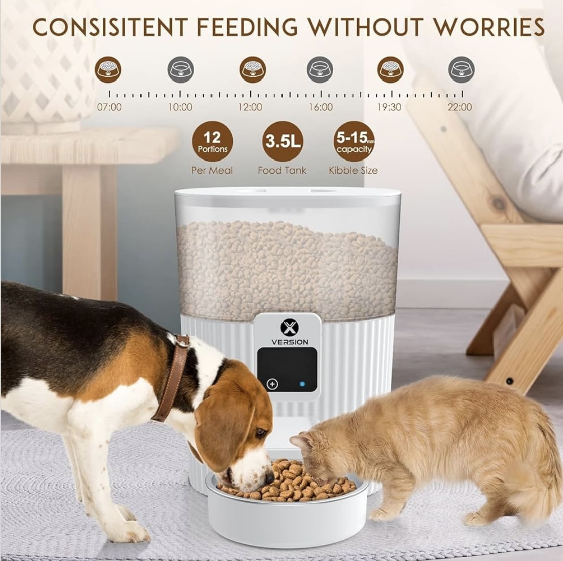 Category: Pet Care Tags: Large 15-Cup Capacity, Stainless Steel Bowl (White), Timed Portion Control, XVersion Automatic Pet Feeder 3L with WiFi App Remote Control - Smart Cat & Dog Food Dispenser