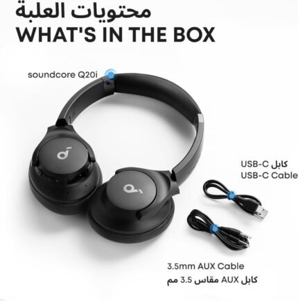 Soundcore by Anker Q20i Hybrid Active Noise Cancelling Headphones, Wireless Over-Ear Bluetooth, 44H Long ANC Playtime, Hi-Res Audio, Big Bass, Customize via an App, Transparency Mode