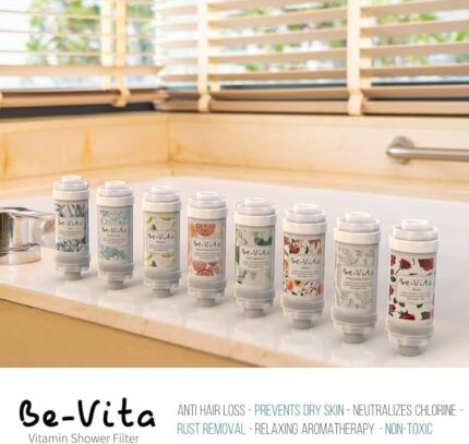 Be-Vita Korean Vitamin Shower Filter – Anti Hair Loss – Prevents Dry Skin – Chlorine Removal – Rust Removal – Relaxing Aromatherapy – Non-Toxic (Baby Powder)